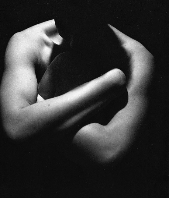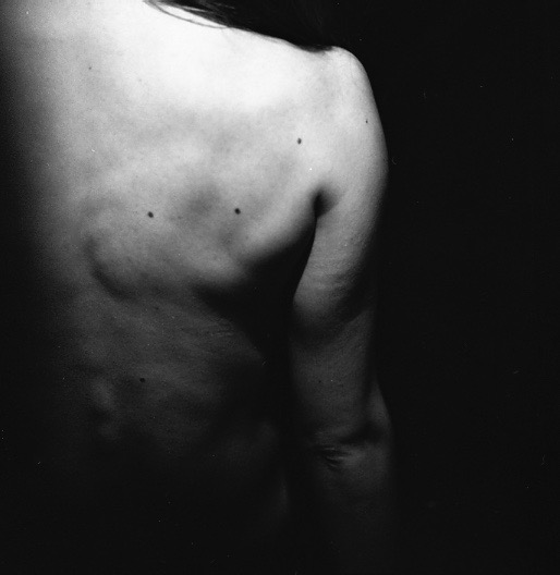 Inspired by a fascination with ancient Greek sculptures. Individually processed in the dark room using dodge and burn techniques and various light exposures per print. Photographed subject in home created studio. To pose the subject into intimate yet dignified positions was the challenge. I photograph candidly; thus to pose the subject into an intentional position that I have choreographed into my mind was a different, yet welcoming, approach to photography I had never explored. Post production amounted to hours in the dark room of trial and error creating endless test strips, applying longer exposures and stronger filters to make the “blacks” black and “whites,” white while accentuating every muscle groove.